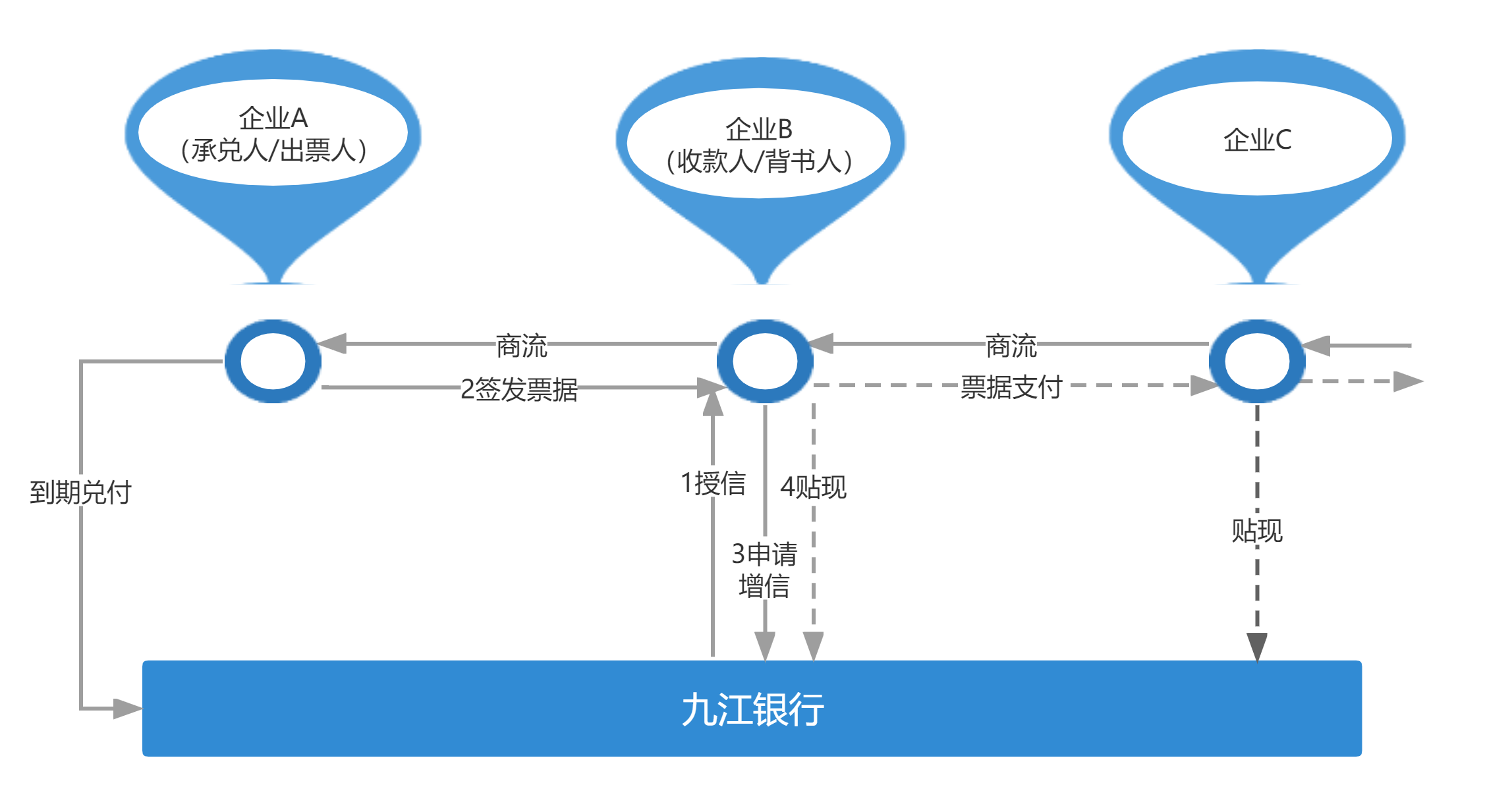 定義:指九江銀行為授信申請人相關的商業(yè)匯票提供增信的業(yè)務,包括商業(yè)匯票保貼增信和商業(yè)匯票保證增信。